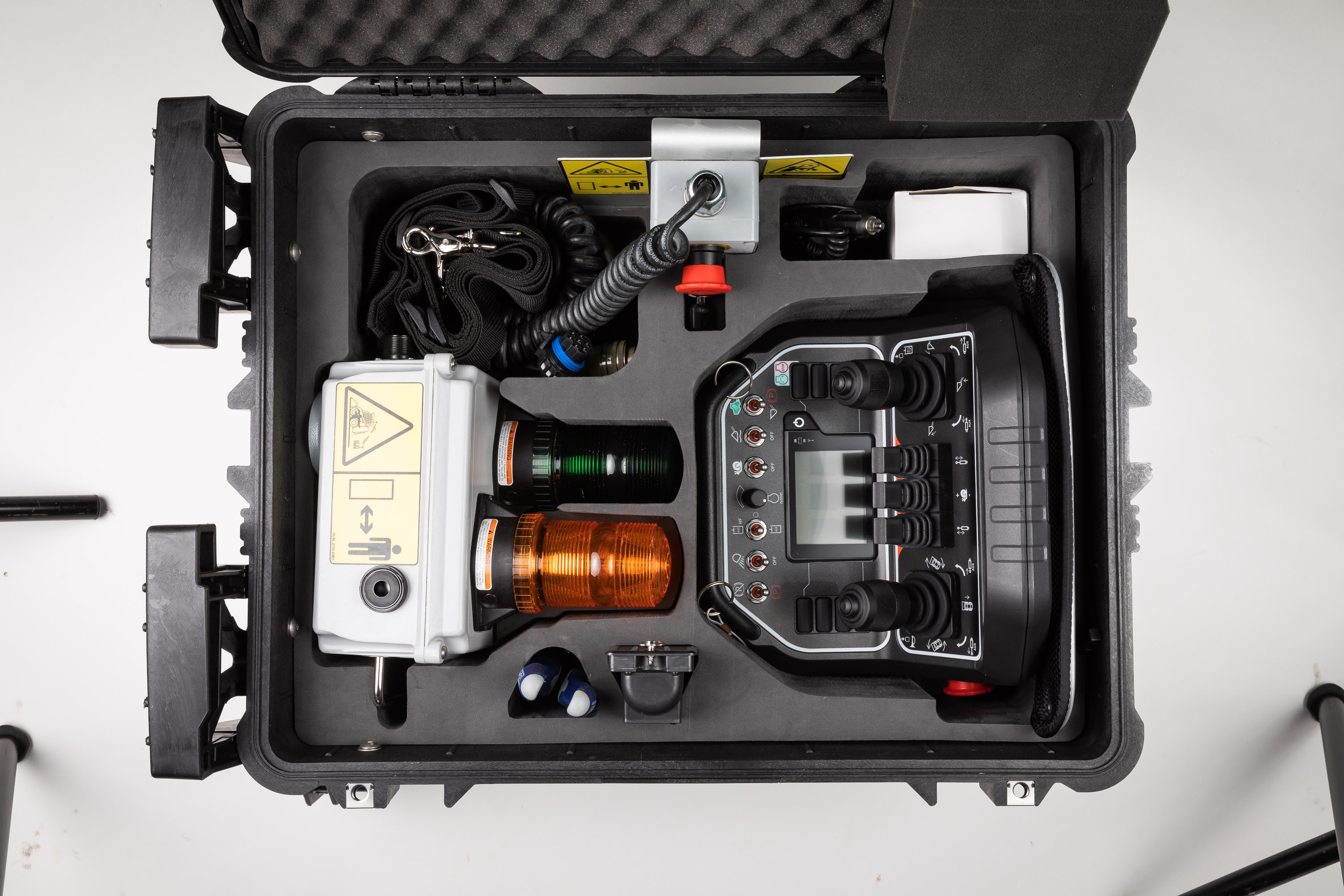 שלט רחוק לעבודות הדורשות הפעלת הכלי ללא מפעיל. השלט מצויד בצג חיווי ומכלול בקרה ושליטה על הכל. מרחק שליטה מרבי 500 מטר. ניתן להפעלה רק בכלים עם הפעלת ג'ויסטיקים (SJC). מותאם ליעה אופני , דגמים S100 - S850, יעה זחלי , דגמים T450 - T870