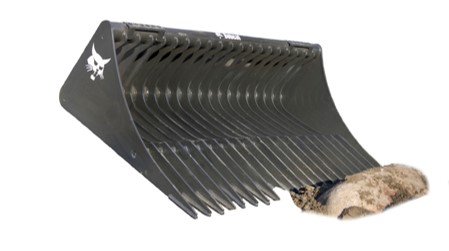 כף מסננת אבנים לעבודות סיקול ואיסוף אבן . רוחב כף מ 1570 ועד 2090 מ"מ , מרווח בין שורות הסינון 76 מ"מ. מותאם ליעה אופני , דגמים S450 - S850, יעה זחלי , דגמים T450 - T870